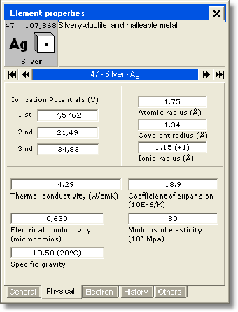 Haz clic sobre alguno de los elementos de la tabla y podrás visualizar todos los datos que Alchemist pone a tu disposición sobre el mismo: información de carácter físico, distribución de electrones, historia del elemento en cuestión (quién lo descubrió, de dónde viene su nombre...) y otros datos.
